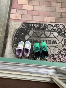 画像はレッスン室の入り口です。靴がちゃんと揃えて脱いでありました。とてもビックリ‼️です。この靴は小学1年生と、2年生の靴です。時々他の生徒さんにも時間が有る時は正しい脱ぎ方を教えていますが、大抵の生徒さんがバラバラ状態です。あまりにも綺麗に揃えてあったので、思わず感動してブログにあげました。みんなこのようにしてくれると嬉しいのですが。。。 ご家庭の躾感も出るのでしょうか。