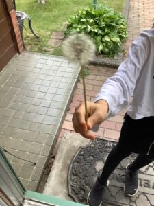 レッスン室入り口前の庭から無断でたんぽぽの綿毛を生徒さんが取って来ました。ニコニコしながら部屋に向かって綿毛を吹き始めたのです。ちょっと!外でやってー!